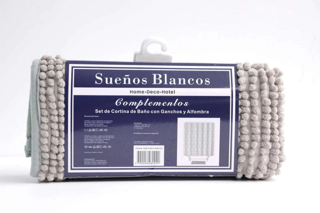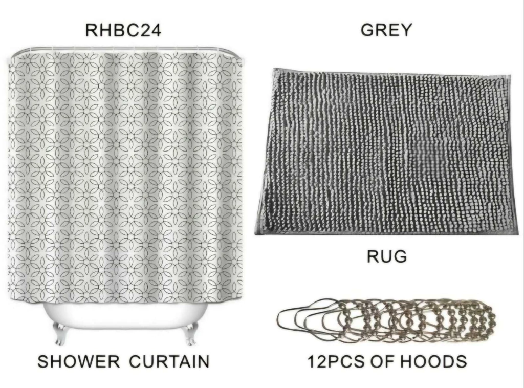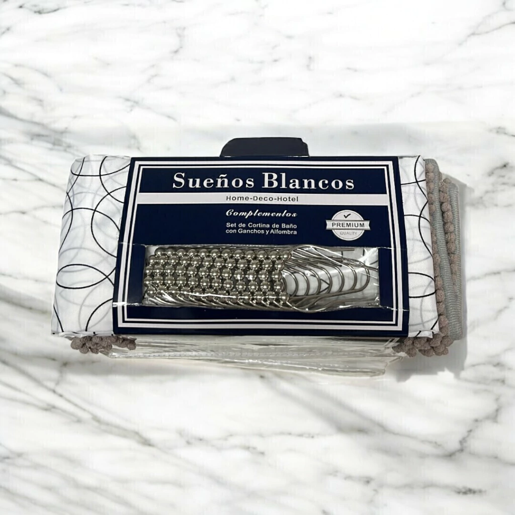 El Set de cortina de Baño + Ganchos + Alfombra es el complemento perfecto para transformar tu baño en un espacio moderno y elegante.